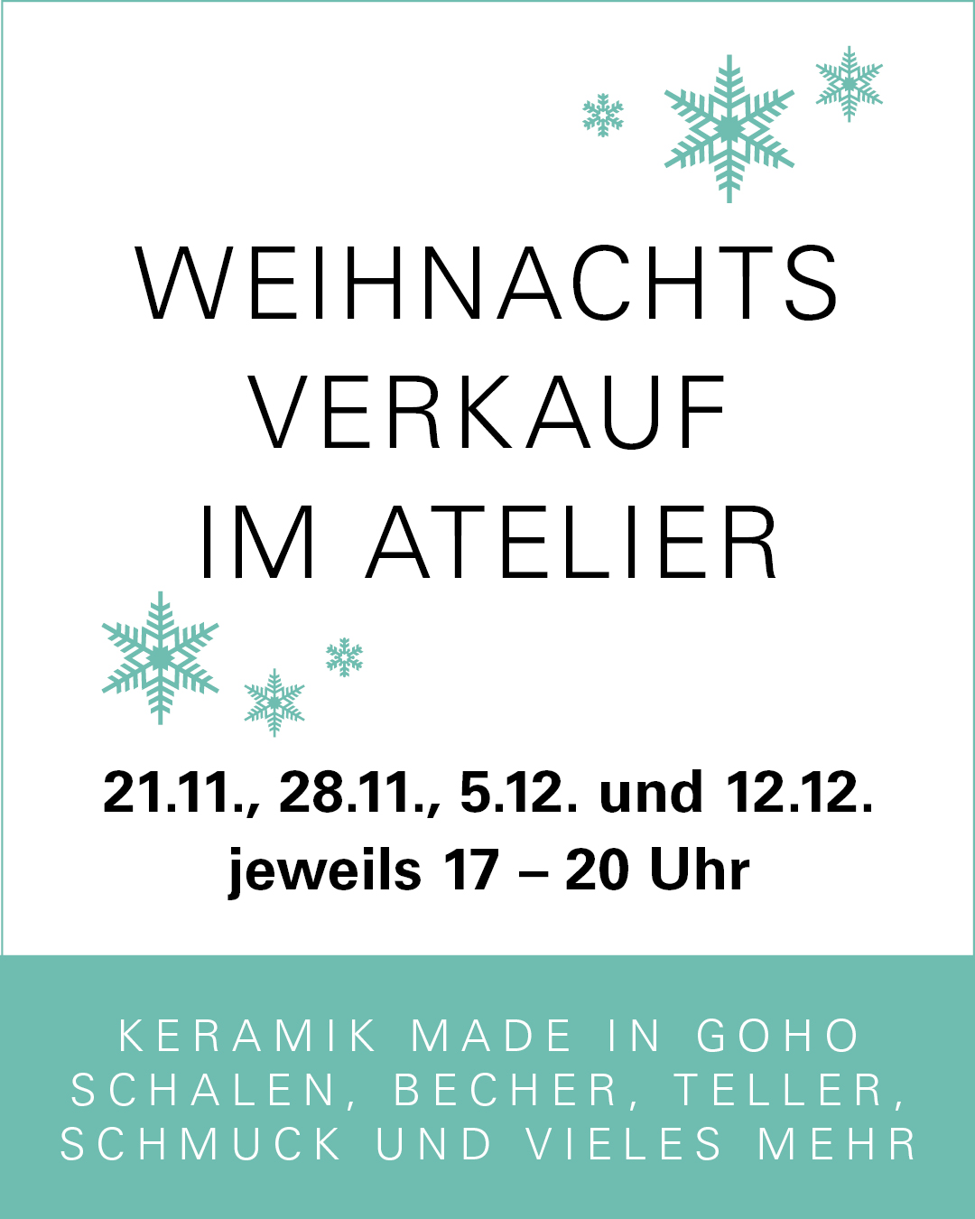 TÖPFERN: 22.11.2025: 10.00-13.00 Uhr + GLASUR: 12.12.2025: 16.00-18.00 Uhr